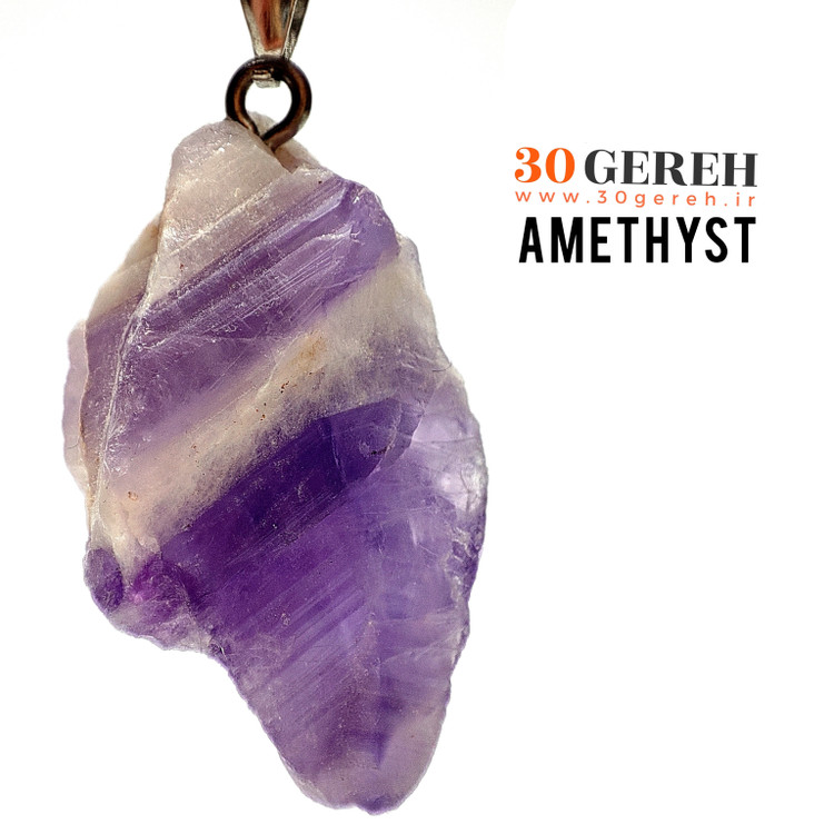 گردنبند سنگی آمیتیست لکه برفی طبیعی و اصل تراش راف :