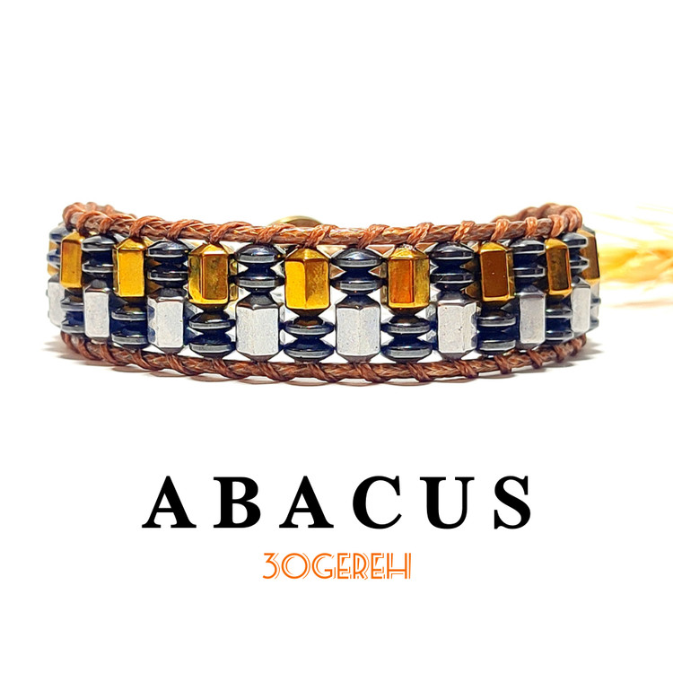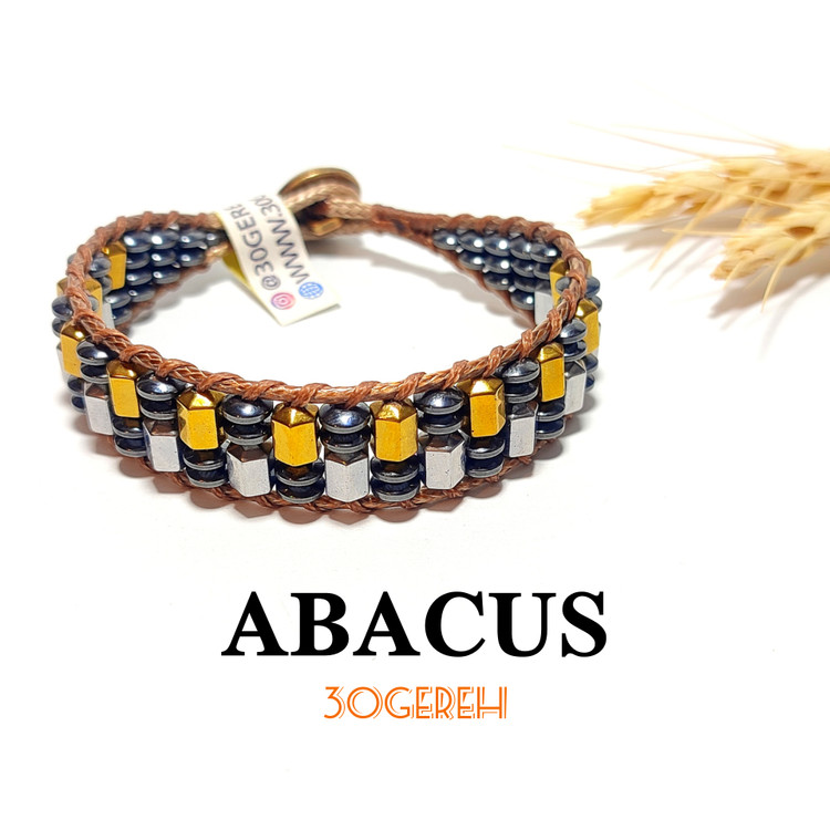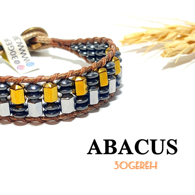دستبند خاص چرتکه : ساخته شده با یه نوع تراش از سنگ پر خاصیت هماتیت ( حدید ) دارای بافت چرمی قهوه ای روشن ، دکمه ای با سایز متناسب با دور مچ . ضمانت دار