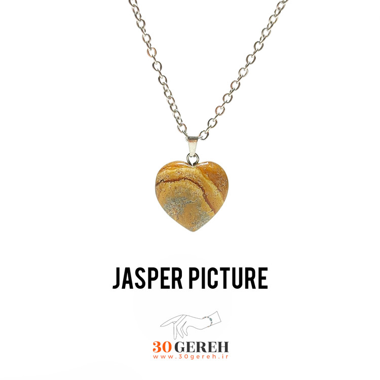 گردنبند سنگی جاسپر منظره یا جاسپر پیکچر اصل طرح قلب با زنجیر استیل رایگان