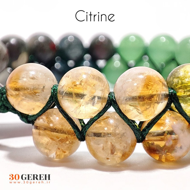 این دستبند متشکل از 6 نوع سنگ معدنی و اصل است که بصورت دو ردیفه روی یکدیگر قرار گرفته اند .