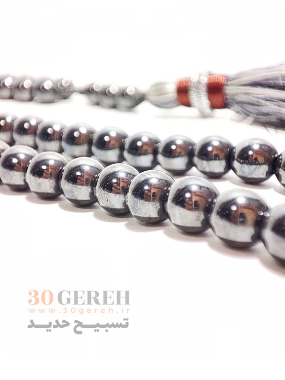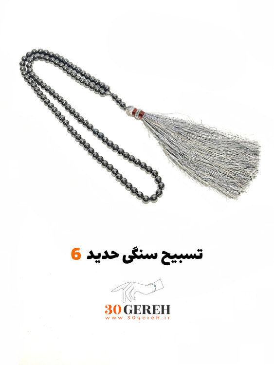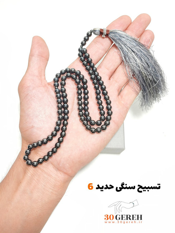 تسبیح سنگی حدید سایز 6 مینیاتوری درجه یک فوق العاده براق تسبیح سنگ حدید
