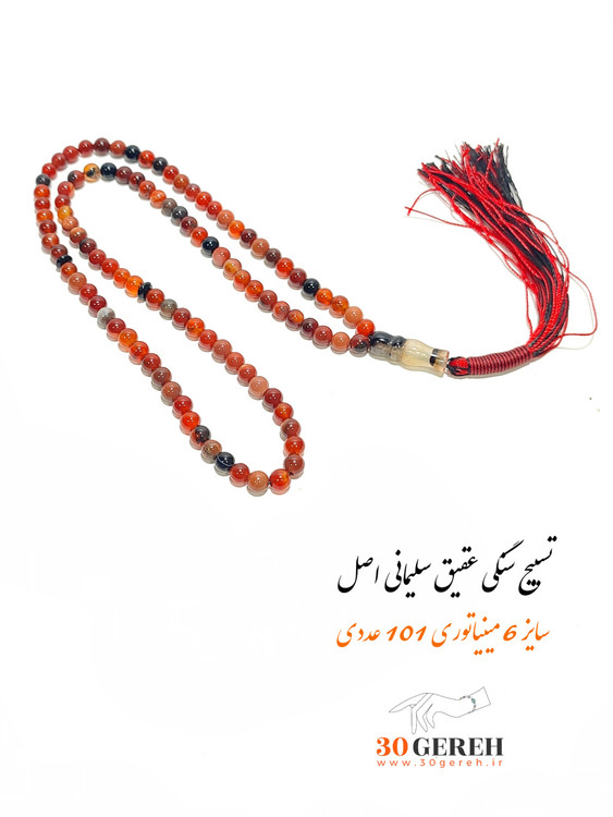 تسبیح سنگی اصل عقیق سلیمانی سایز 6 مینیاتوری درجه یک بلند 101 عددی
