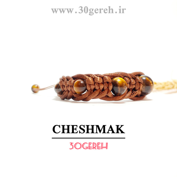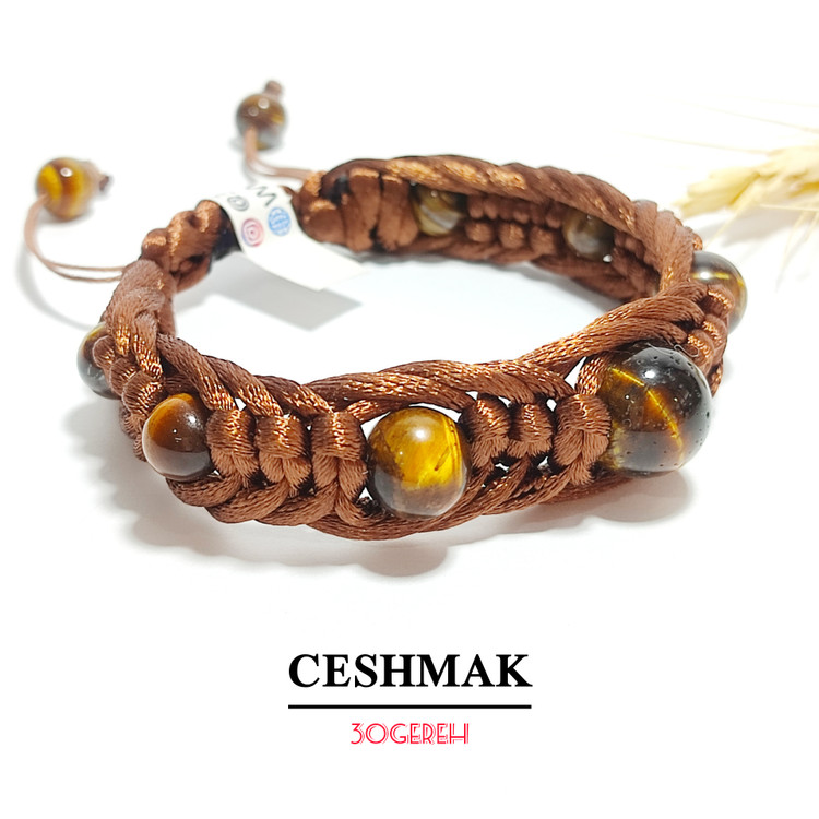 دستبند سنگ اصل چشم ببر با بافت سه ردیفه ماکارون