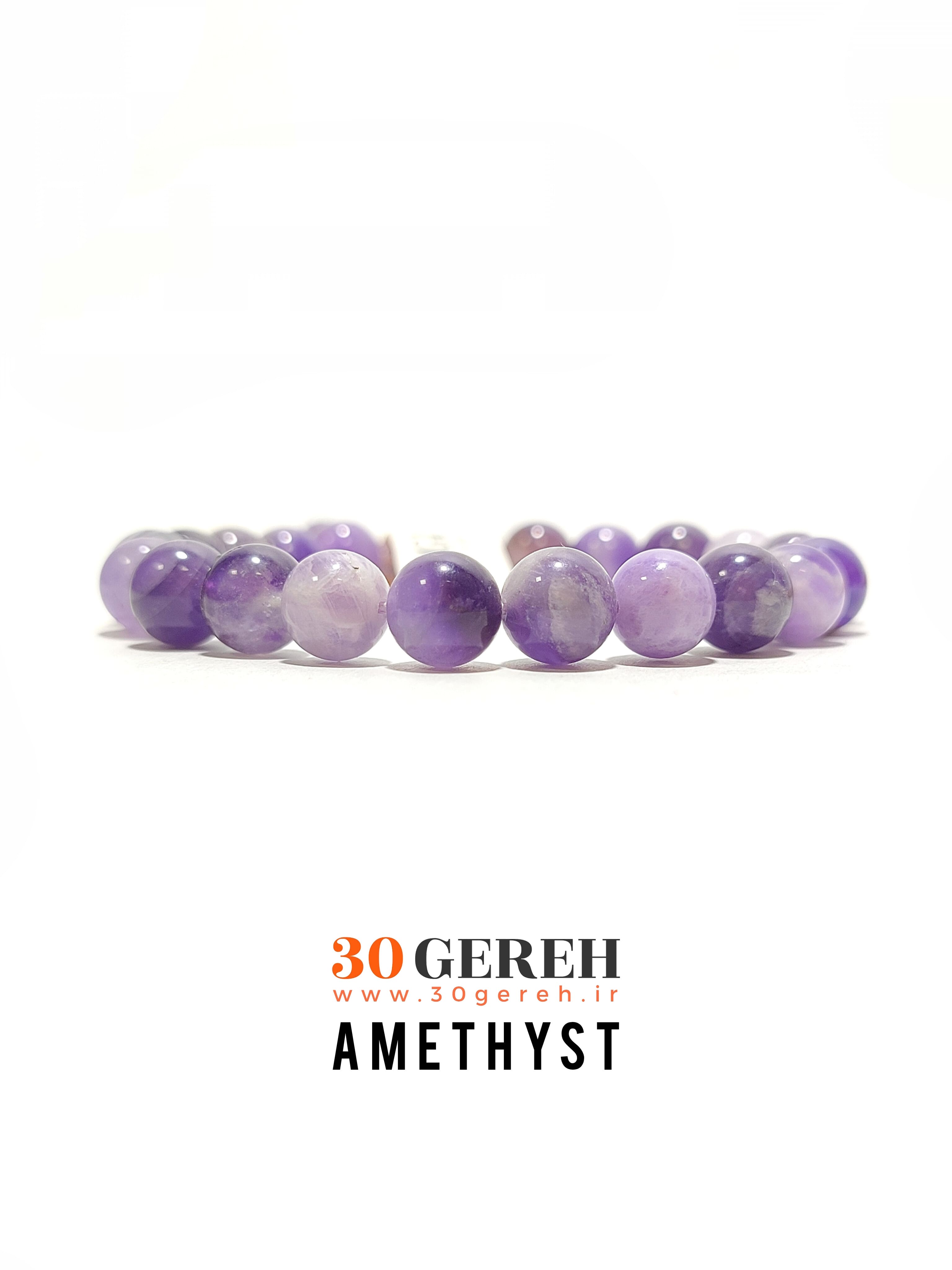دستبند تمام سنگ آمیتیست لیس یا آمیتیست سوسنی رگه دار قابل تنظیم